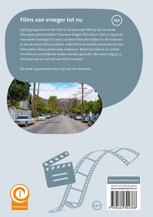 Films van vroeger tot nu Kijk jij graag films en het liefst in de bioscoop? Wist je dat de eerste films geen geluid hadden? Wanneer kregen films kleur? Wat is slapstick? Hoe werkt montage? En wat is de beste film aller tijden? In dit boek lees je wie de eerste films maakten, welke films de wereld veroverden en hoe filmmakers elkaar steeds weer inspireren. Maak een tijdreis en ontdek hoe films in verschillende landen worden gemaakt. Wie weet krijg jij na het lezen wel zin om zelf een film te maken!