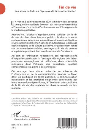En France, à partir des années 1970, la fin de vie est devenue une question sociétale évoluant sur les controverses liées à l'ouverture d'un droit à l'euthanasie et sur l'émergence de la médecine palliative. Aujourd'hui, plusieurs représentations sociales de la fin de vie circulent dans l'espace public: le discours social contemporain, saturé par la question euthanasique, légitime et véhicule un idéal de mort sans agonie, tandis que le discours eschatologique de la culture palliative, originellement fondé sur un humanisme chrétien, envisage la fin de vie comme une période propice à l'accomplissement de l'existence. Au sein de l'institution hospitalière, ces représentations divergentes participent à l'ancrage idéologique des thérapeutiques oncologiques et palliatives, deux spécialités médicales dont l'alliance des expertises, pourtant complémentaires, peine à se construire. Cet ouvrage, issu d'une recherche en sciences de l'information et de la communication, analyse la façon dont les politiques de santé publique, la communication hospitalière et les pratiques soignantes contribuent, par leurs interactions dynamiques, à l'évolution des condition de la fin de vie des malades en phase terminale de leur maladie.