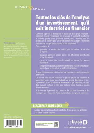 Toutes les clés de l’analyse d’un investissement, qu’il soit industriel ou financier.