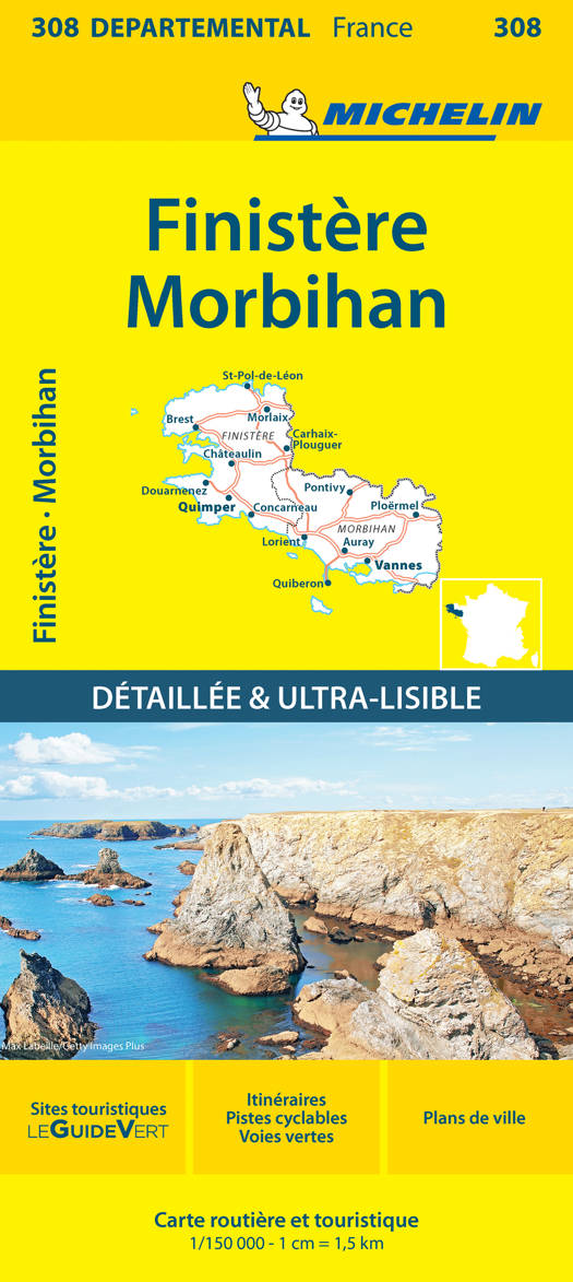 Met een schaal van 1/150 000 oftewel 1cm = 1,5km en reliëf van satellietbeeld biedt de Michelin kaart DEPARTEMENT Finistère, Morbihan u een exact beeld van de topografie. Dankzij de aangeraden toeristische trajecten laat ze u toe om alle rijkdom en plaatselijkebezienswaardigheden grondig te verkennen en de mooiste toeristische sites te ontdekken, uitgekozen en aangeduid door Michelin. U zal er ook de nieuwe nummering van de nationale en departementale wegen ontdekken,alsook stadsplattegronden van de belangrijkste steden.