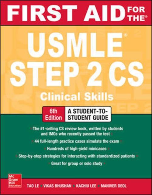 The Sixth Edition of First Aid for the USMLE Step 2 CS has been updated to reflect the latest NBME exam format and worksheet items, and incorporates feedback from recent US and international test-takers. This high-yield review delivers a thorough exam preparation guide for the USMLE Step 2 CS, offering a solid review of frequently test CS cases, along with proven study and exam strategies for clinical encounters.
