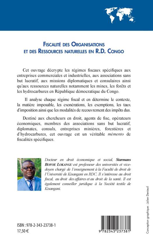 Cet ouvrage décrypte les régimes fiscaux spécifiques aux entreprises commerciales et industrielles, aux associations sans but lucratif, aux missions diplomatiques et consulaires ainsi qu'aux ressources naturelles notamment les mines, les forêts et les hydrocarbures en République démocratique du Congo. Il analyse chaque régime fiscal et en détermine le contexte, la matière imposable, les exonérations, les exemptions, les taux d'imposition ainsi que les modalités de recouvrement des impôts dus.