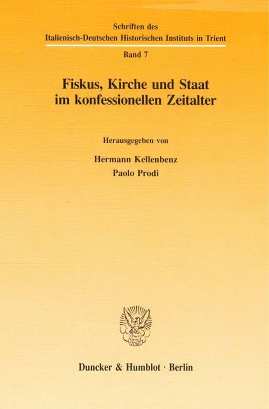Thema des vorliegenden Bandes ist das Verhältnis zwischen dem religiösen Bereich und den obrigkeitlichen Gewalten, die wir mit dem Begriff des Staats umschreiben, und es geht dabei im besonderen um die Rolle des Fiskus. Als zeitlicher Rahmen gilt das konfessionelle Zeitalter, in dem sich die folgenschweren Vorgänge der Reformation und Gegenreformation oder katholischen Reform abspielten. Den geographischen Raum bilden einerseits die Staatenwelt der Appenninenhalbinsel, andererseits das Reich und seine Territorien. Die Betonung liegt auf wirtschaftlichem Terrain, aber Aufmerksamkeit wird auch auf das komplexe Gewebe des Politischen, Religiösen und Kirchlichen gerichtet. Es geht also in gewisser Hinsicht um einen interkulturellen Vergleich.