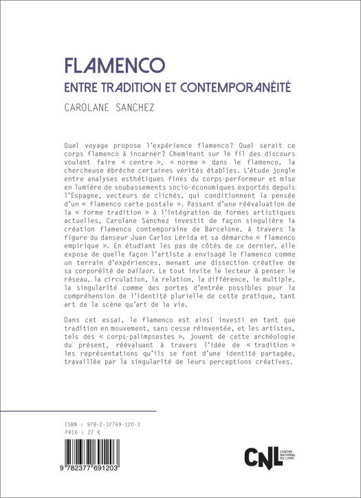 Ce présent ouvrage tend à répondre à des questionnements sur le flamenco ayant émergé durant la pratique de la danse flamenco de Carolane Sanchez, l'étude est donc écrite depuis la posture de chercheuse, mais aussi d'interprète, de chorégraphe et de pédagogue. À travers la restitution d'une itinérance sensible entre Lyon, Séville, Madrid et la Chine, la docteure interroge dans cette étude ce qui fait flamenco, réévaluant par une méthode déconstructiviste des discours et gestes qui tendraient à définir ce qui fait " normes " (poncifs/vérités établies/stéréotypes) dans le flamenco. Elle déploie ainsi l'arborescence d'agencements de discours afin de questionner ce flamenco qu'on dit populaire, folklorique, gitan, voire pur...