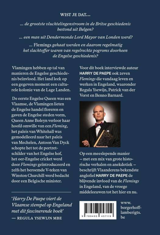 Op een meeslepende manier – met een mix van grote historische verhalen en anekdotiek – beschrijft Harry De Paepe de blijvende invloed van de 'Flemings' in Engeland, van de vroege middeleeuwen tot het hier en nu.