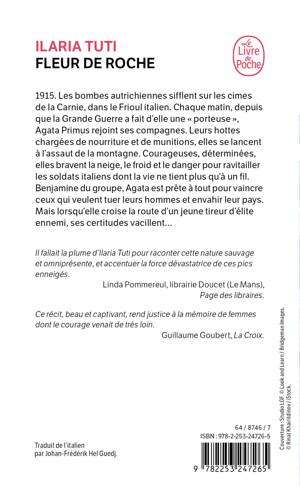 1915. Les bombes autrichiennes sifflent sur les cimes de la Garnie, dans le Frioul italien. Chaque matin, depuis que la Grande Guerre a fait d’elle une « porteuse », Agata Primus rejoint ses compagnes. Leurs hottes chargées de nourriture et de munitions, elles se lancent à l’assaut de la montagne. Courageuses, déterminées, elles bravent la neige, le froid et le danger pour ravitailler les soldats italiens dont la vie ne tient plus qu’à un fil. Benjamine du groupe, Agata est prête à tout pour vaincre ceux qui veulent tuer leurs hommes et envahir leur pays. Mais lorsqu’elle croise la route d’un jeune tireur d’élite ennemi, ses certitudes vacillent…