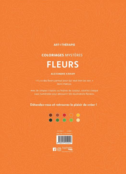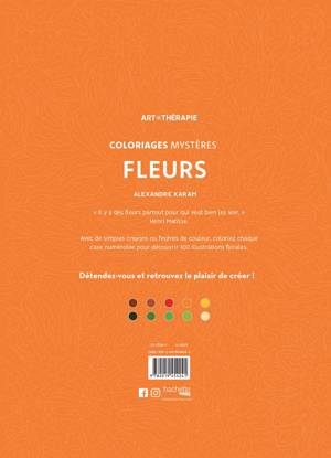 Avec de simples crayons ou feutres de couleur, coloriez chaque case numérotée pour découvrir 100 illustrations florales.