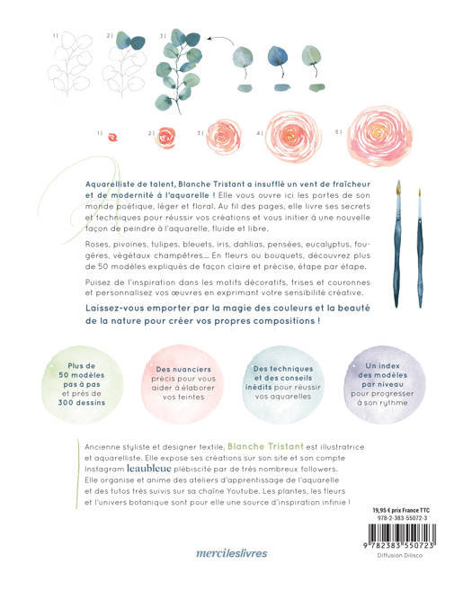 Aquarelliste de talent, Blanche Tristant a insufflé un vent de fraîcheur et de modernité à l'aquarelle ! Elle vous ouvre ici les portes de son monde poétique, léger et floral. Au fil des pages, elle livre ses secrets et techniques pour réussir vos créations et vous initier à une nouvelle façon de peindre à l'aquarelle, fluide et libre.