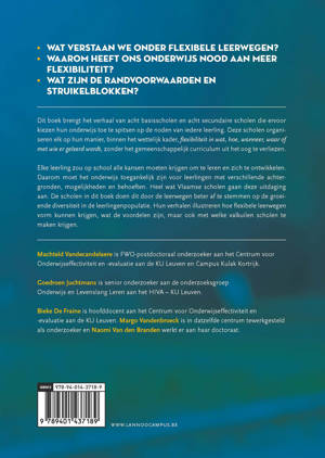 Heel wat Vlaamse scholen gaan deze uitdaging aan. De scholen in dit boek doen dit door de leerwegen beter af te stemmen op de groeiende diversiteit in de leerlingenpopulatie. Hun verhalen illustreren hoe flexibele leerwegen vorm kunnen krijgen, wat de voordelen zijn, maar ook met welke valkuilen scholen te maken krijgen.
