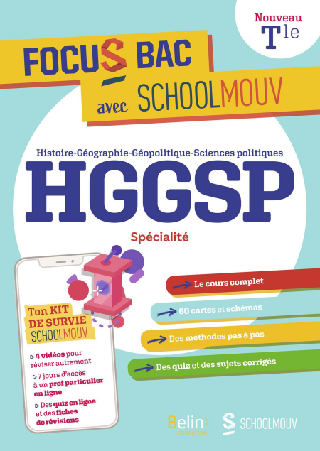 • Le cours complet pour comprendre les enjeux et retenir l'essentiel. • Des cartes et des schémas pour retenir efficacement. • Des rappels des acquis 1re et des quiz pour se tester. • Des méthodes pas à pas pour progresser. • Des sujets guidés et des sujets complets corrigés pour s’entraîner. • Des conseils pratiques pour bien se préparer à l’épreuve. + Inclus : Ton kit de survie pour le Bac avec SchoolMouv > Des fiches de révision avec des focus sur des points de cours. > Des vidéos pour mieux comprendre et s’en souvenir à coup sûr. > Un tchat avec un prof particulier pour poser toutes les questions gratuitement pendant 7 jours.