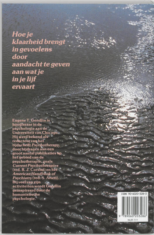 Focussen is een techniek die mensen leert zien hoe persoonlijke problemen en vragen concreet in het lichaam merkbaar zijn. Focussen is een veranderingsproces dat zich moeilijk in woorden laat weergeven zonder afbreuk te doen aan de wezenlijke kenmerken ervan. Men kent het pas wanneer men het (lijfelijk) ervaart. Gendlin deed jarenlang onderzoek naar die wezenlijke kenmerken (die therapie doen slagen), en bouwde daarop deze uiterst simpele en door iedereen toe te passen methode. In dit boek geeft hij aanwijzingen om de juiste condities te scheppen waaronder verandering mogelijk wordt, welke verandering dit ook is, door wie of wanneer ook geuit. Eugene T. Gendlin is hoogleraar in de psychologie aan de Universiteit van Chicago en laat zich vooral inspireren door de humanistische psychologie. Hij werd bekend als redacteur van het tijdschrift Psychotherapy, en door bijdragen aan een groot aantal publicaties op het gebied van de psychotherapie.
