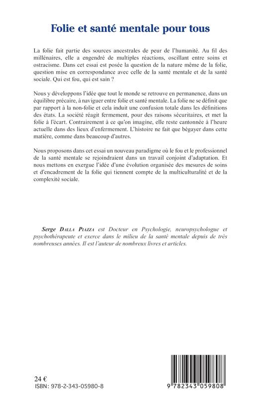 Dans cet essai est posée la question de la nature même de la folie, question mise en correspondance avec celle de la santé mentale et de la santé sociale. Qui est fou, qui est sain ? Tout le monde se retrouve en permanence, dans un équilibre précaire, à naviguer entre folie et santé mentale alors que la société, pour des raisons sécuritaires, réagit fermement et met la folie à l'écart. Cet essai propose un nouveau paradigme où le fou et le professionnel de la santé mentale se rejoindraient dans un travail conjoint d'adaptation.