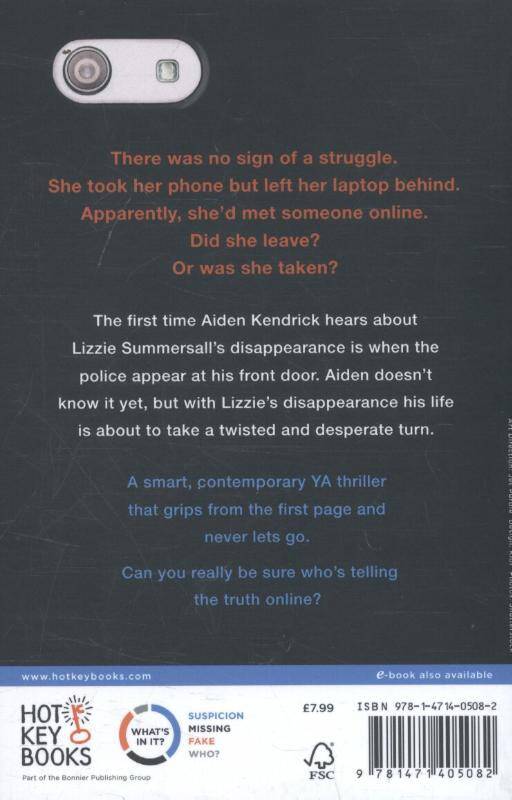 that the police think she went to meet one of them, he begins to wonder how well he ever really knew her, and Aiden doesn't know it yet, but with Lizzie's disappearance his life is about to take a twisted and desperate turn.