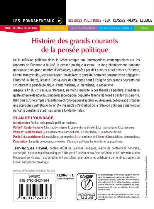De la réflexion politique dans la Grèce antique aux interrogations contemporaines sur les rapports de l’Homme à la Cité, la pensée politique a connu un long cheminement, donnant naissance à un grand nombre d’idéologies, élaborées par des auteurs aussi divers qu’Aristote, Comte, Montesquieu, Marx ou Popper. Par-delà cette pluralité, certaines constantes se dégagent : l’autorité, la liberté, l’égalité. Ces valeurs de référence sont à l’origine des grands courants qui structurent la pensée politique : l’autoritarisme, le libéralisme, le socialisme. Jusqu’à la fin du XXe siècle, la référence, au moins implicite, à ces théories a perduré. Et même la quête actuelle de nouveaux modèles (écologique, populiste, féministe) ne les a pas fait disparaître.