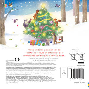 Kleine kinderen genieten van de feestelijke lampjes en ontdekken een fonkelende verrassing achter in dit boek.