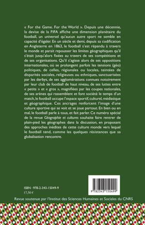 « For the Game. For the World ». La devise de la FIFA affiche une dimension planétaire du football, un universel qu'aucun autre sport ne semble en capacité d'égaler. Qu'il s'agisse alors de ses oppositions internationales, où se prolongent parfois les tensions (géo) politiques, de celles, régionales ou locales, teintées de disparités sociales, religieuses ou ethniques, de ses luttes entre « petits » et « gros », de ses arènes qui rassemblent et font société le temps d'un match, le football occupe l'espace sportif, culturel, médiatique et géographique.