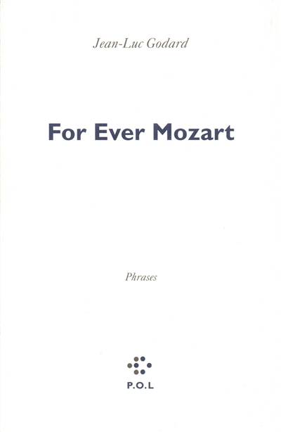 For Ever Mozart, le film, montre les histoires croisées de comédiens qui veulent monter Les Jeux de l'amour et du hasard à Sarajevo, et celles d'un cinéaste qui n'arrive pas à tourner son film. Le texte de ce livre c'est, monté, le "découpage dialogué" du film : succession de phrases, précisément, de sentences, d'histoires brèves, de citations. Pour ceux qui ont vu For Ever Mozart, ces pages font littéralement lever les images, les bruits, la musique du film et en font résonner la parole heurtée. Pour les autres, c'est un poème très concret, très précis où passent et repassent les éclats du monde, de la guerre et de l'art.