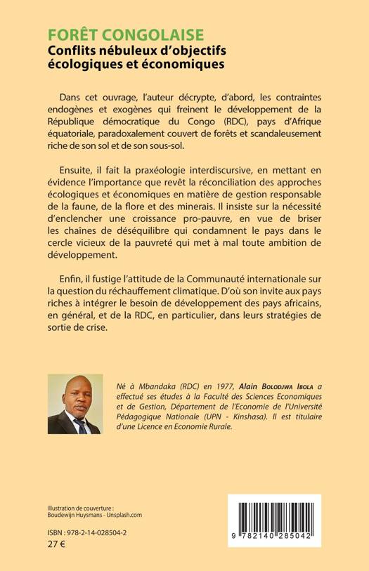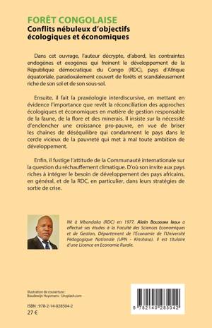 Dans cet ouvrage, l'auteur décrypte, d'abord, les contraintes endogènes et exogènes qui freinent le développement de la République démocratique du Congo (RDC), paysd'Afrique équatoriale, paradoxalement couvert de forêts et scandaleusement riche de son sol et de son sous-sol. Ensuite, il fait la praxéologie interdiscursive, en mettant en évidence l'importance que revêt la réconciliation des approches écologiques et économiques en matière de gestion responsable de la faune, de la flore et des minerais. Enfin, il fustige l'attitude de la Communauté internationale sur la question du réchauffement climatique.