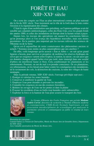 Voilà longtemps qu'on associe "Eau et Arbre". Quel est le rôle de la forêt dans la lutte contre l'érosion et la régulation des climats ? Un grand ligneux, pour prospérer, mobilise les réserves hydriques du sol, de façon variable selon l'espace, la saison, l'emplacement (isolé ou non). Pour la période d'étude retenue, voici les principaux axes privilégiés : - protection des zones humides ; - conservation et amélioration de la qualité de l'eau ; - connaissance des exigences en eau des essences forestières ; - érosion, ravinement, évacuation des excédents d'eau ; - eau et transport du bois.
