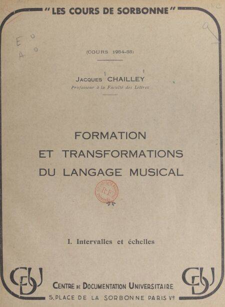 Formation et transformations du langage musical (1). Intervalles et échelles EBOOK