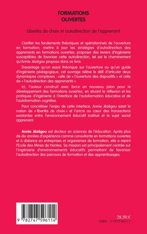 Un dispositif de formation peut être qualifié "d'ouvert" s'il accorde à l'apprenant des libertés de choix pour qu'il puisse exercer un contrôle socio-organisationnel et pédagogique sur sa formation et ses apprentissages. Cet ouvrage prétend fonder une définition de "l'ouverture" en formation, l'articuler avec le concept d'autodirection, décrire et comprendre les stratégies d'autodirection des apprenants en formation ouverte.