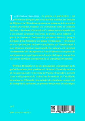 La litterature byzantine - la poesie en particulier - est fortement marquee par ses fonctions sociales. Les besoins de l'Eglise et de l'Etat donnent sans cesse naissance a de nouvelles formes poetiques, toujours au croisement entre la tradition litteraire et la volonte d'innovation. Ce volume est une introduction a un univers largement meconnu du public, pour eclaircir - a partir des hymnes chretiens des premiers siecles et jusqu'a l'origine d'une litterature en langue vernaculaire - l'evolution de cette production litteraire caracterisee par l'attachement a une glorieuse tradition dans laquelle les auteurs ont introduit constamment des changements. Pour eclairer cette enquete, de nombreux textes poetiques sont donnes a la lecture et nous font decouvrir la beaute insoupconnee de la poetique byzantine.