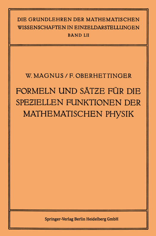 Formeln Und Sätze Für Die Speziellen Funktionen Der Mathematischen Physik