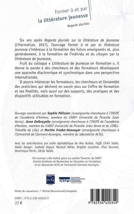 Six ans après Regards pluriel sur la littérature de jeunesse (L'Harmattan, 2017), l'ouvrage Former à et par la littérature jeunesse s'intéresse à la formation des futurs enseignants et, plus généralement, à la formation de l'individu et du citoyen par la littérature de jeunesse. Fruit du colloque Littérature de jeunesse en formation, il donne la parole à des chercheurs et des formateurs développant une approche diachronique et synchronique dans une perspective internationale. Il pourra intéresser les formateurs, les chercheurs et l'ensemble des praticiens qui désirent en savoir plus sur l'offre de formation et ses finalités, mais aussi sur des supports, des pratiques et des dispositifs utilisables en formation.