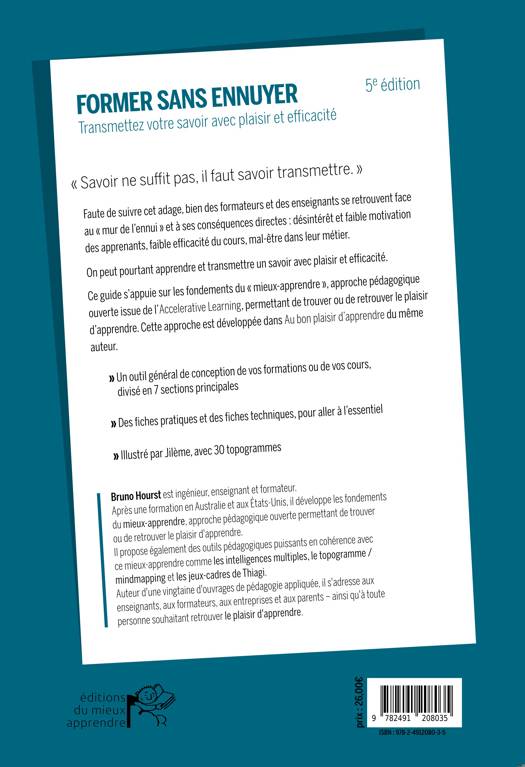 Publié lors de ses quatre premières éditions chez Eyrolles et déjà vendu à plus de 18 000 exemplaires, "Former sans ennuyer" a été plébiscité par de très nombreux formateurs et enseignants. Un ouvrage unique, illustré par Jilème. Il est maintenant disponible dans sa 6ème édition aux Editions du Mieux-apprendre.