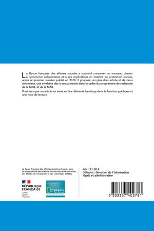 La Revue française des affaires sociales a souhaité consacrer un nouveau dossier à l'économie collaborative et à ses implications en matière de protection sociale, après un premier numéro publié en 2018. Il propose, en plus d'un article et de deux entretiens, une synthèse des travaux menés dans le cadre du programme de recherche de la MIRE et de la MAR.