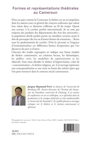 Au Cameroun, le théâtre est un art populaire dont les auteurs sont en général des citoyens ordinaires. Les études regroupées ici indiquent une forme étudiée de théâtre camerounais, ses créateurs locaux, les thématiques, les publics visés, les modalités de représentation et les objectifs. Sont ainsi abordés le théâtre d'improvisation, celui de conscientisation, le théâtre religieux, etc.