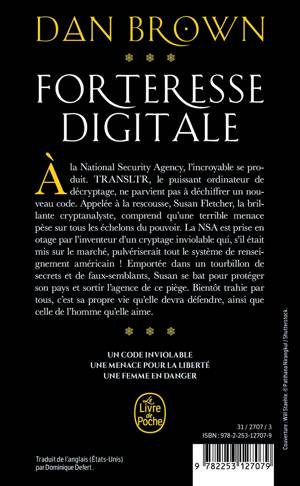 À la National Security Agency, l'incroyable se produit. TRANSLTR, le puissant ordinateur de décryptage, ne parvient pas à déchiffrer un nouveau code. Appelée à la rescousse, Susan Fletcher, la belle et brillante cryptanalyste, comprend qu'une terrible menace pèse sur tous les échelons du pouvoir. La NSA est prise en otage par l'inventeur d'un cryptage inviolable qui, s'il était mis sur le marché, pulvériserait tout le système de renseignement américain ! Emportée dans un tourbillon de secrets et de faux-semblants, Susan se bat pour protéger son pays et sortir l'agence de ce piège. Bientôt trahie par tous, c'est sa propre vie qu'elle devra défendre ainsi que celle de l'homme qu'elle aime.