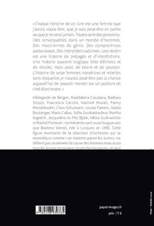 "Il n'y a pas de femmes compositrices !" proclamait en 1920 un maestro britannique. Et Hildegarde de Bingen au Moyen Age ou Maddalena Casulana à la Renaissance ? Et Nannerl Mozart, Fanny Mendelssohn, Clara Schumann ou encore Björk ? Autant d'artistes venues peupler ce livre, aux côtés d'interprètes telles que Martha Argerich, Jacqueline du Pré et Maria Callas, ainsi que de grandes pédagogues comme Nadia Boulanger. Mieux, c'est une jeune musicienne italienne qui manie ici la plume aussi talentueusement que sa baguette de cheffe d'orchestre pour brosser ces seize portraits de consoeurs ayant dû batailler dans un univers masculin, et pour nous fredonner à travers elles une petite histoire de la musique accessible à toutes les oreilles, par-delà les préjugés et les barrières de genre.