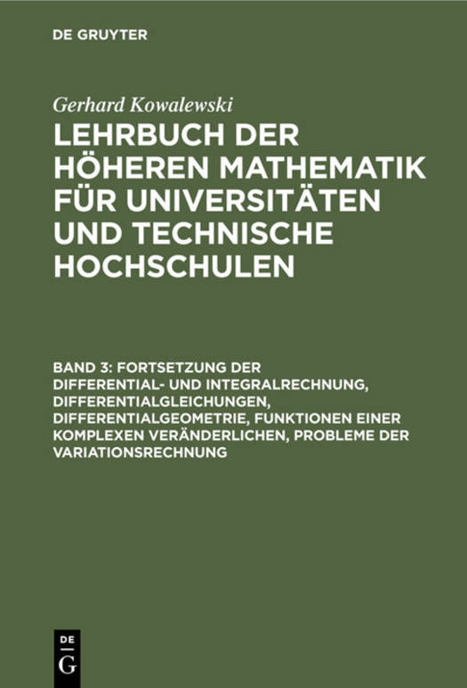 7. Fortsetzung Der Differential- Und Integralrechnung, Differentialgleichungen, Differentialgeometrie, Funktionen Einer Komplexen Veränderlichen, Probleme Der Variationsrechnung