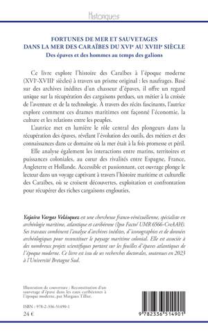 Ce livre explore l’histoire des Caraïbes à l’époque moderne (XVIe-XVIIIe siècles) à travers un prisme original : les naufrages. Basé sur des archives inédites d’un chasseur d’épaves, il offre un regard unique sur la récupération des cargaisons perdues, un métier à la croisée de l’aventure et de la technologie. À travers des récits fascinants, l’autrice explore comment ces drames maritimes ont façonné l’économie, la culture et les relations entre les peuples. L’autrice met en lumière le rôle central des plongeurs dans la récupération des épaves, révélant l’évolution des outils, des métiers et des connaissances dans ce domaine où la mer était à la fois promesse et péril. Elle analyse également les interactions entre marins, territoires et puissances coloniales, au cœur des rivalités entre Espagne, France, Angleterre et Hollande. Accessible et passionnant, cet ouvrage plonge le lecteur dans un voyage captivant à travers l’histoire maritime et culturelle des Caraïbes, où se croisent découvertes, exploitation et confrontation pour récupérer des riches cargaisons englouties.