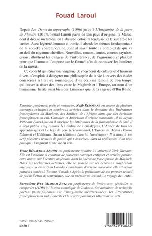 Depuis Les Dents du topographe (1996) jusqu'à L'Insoumise de la porte de Flandre (2017), Fouad Laroui parle de son pays d'origine, le Maroc, il en dresse un tableau où l'absurde côtoie la tendresse et le rire frôle les larmes. Avec légèreté, humour et ironie, il aborde les thèmes fondamentaux de la société contemporaine dont il saisit toute la complexité qui va au-delà du royaume chérifien.