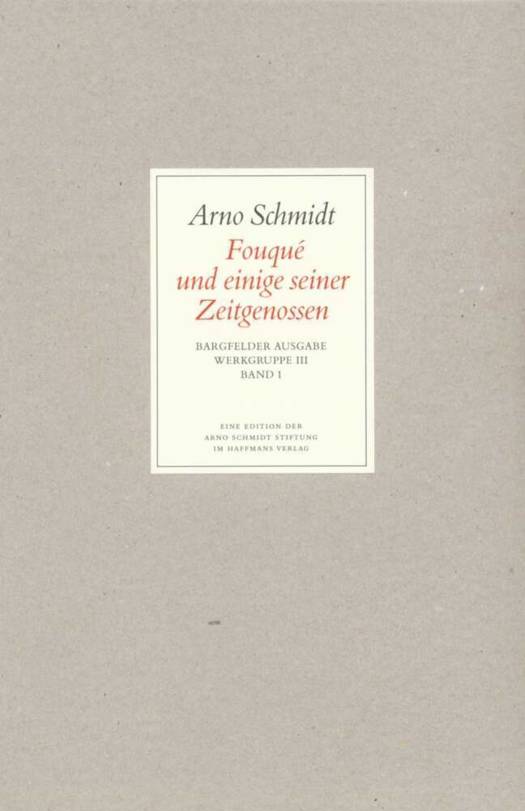 »'Die Nacht wird kalt', sagte der alte Rudolf, 'Von dem Wetterfähnlein kreischt es herunter; die Eichen fangen zu rauschen an - : lege mehr Holz an den Heerd, Alwin'«. Jene Sätze aus Friedrich de la Motte Fouqués (1777-1843) Roman Alwin (1808) müssen schon auf den Schüler Arno Schmidt eine hypnotische Wirkung ausgeübt haben, zitiert er sie doch immer wieder in seinem Werk und bekennt einmal: »Da war ich hin!« Von dem Tag an, da er den rotleinenen Band in der Schulbibliothek fand, stöberte er in allen Antiquariaten nach den verschollenen Büchern des Romantikers. Aus Bibliotheken, Pfarrhäusern und Familienarchiven trug er seit Ende der dreißiger Jahre alles nur erdenkliche Material über Fouqué zusammen, selbst wenn er gemeinsam mit seiner Frau auf dem Tandem oder mit verbilligten Flüchtlingsfahrkarten per Bahn einer vergilbten Urkunde wegen herumreisen mußte. Was Schmidt seinen literarischen Helden als Werkstück immer wieder auf die Schreibtische legte: die Arbeit an einer monumentalen Lebensgeschichte des dichtenden Barons, verfertigte er am Ende selbst. 1958 erschien auf 590 eng bedruckten Seiten die Biographie Fouqué und einige seiner Zeitgenossen.