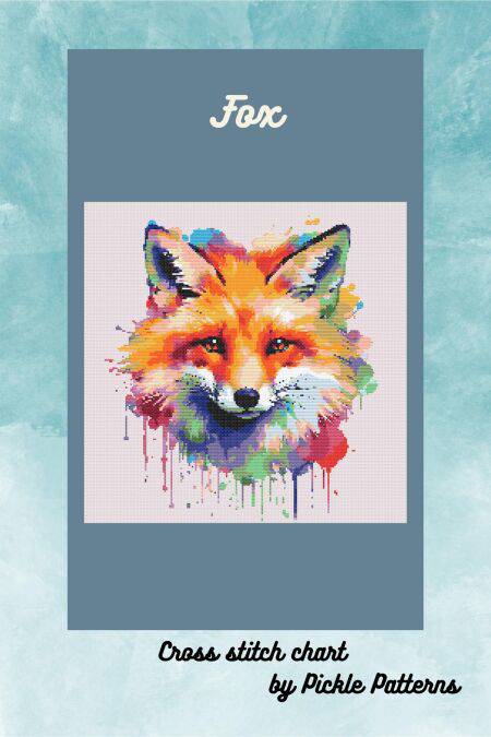 These cross stitch charts are a whimsical design of a fox.