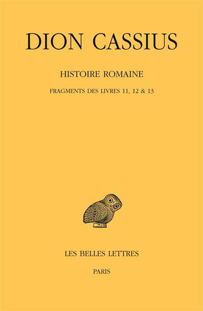 L’Histoire romaine de Cassius Dion (ca 160 - 235) fournit le seul récit continu encore disponible aujourd’hui du « siècle » des guerres puniques (264 - 146 av. J.-C.). Les livres 11 à 13, qui couvrent les années 264-218, constituent une source d’autant plus précieuse qu’ils permettent, en l’absence du témoignage de Tite-Live, de compléter ou de contrebalancer le résumé rapide que donne Polybe du premier conflit entre Rome et Carthage.
