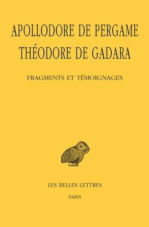 English summary: This critical edition and French translation presents the works of Apollodorus of Pergamon and Theodorus of Gadara, and contributes to a larger project of understanding Greek rhetoricians from the Hellenistic period. French description: Apollodore de Pergame et Theodore de Gadara sont deux rheteurs d'origine grecque dont l'activite est attestee dans le bassin mediterraneen entre le ier s. av. J.-C. et le ier s. ap. J.-C. L'originalite de cette edition est de ne pas suivre la tradition qui a toujours envisage les deux rheteurs comme des antagonistes dont les doctrines devaient necessairement s'opposer point par point, faisant ainsi disparaitre la specificite de chacun d'eux. Cet ouvrage doit avant tout etre considere comme un jalon supplementaire dans la recherche, de plus grande envergure, qui vise a reconstituer les themes de la theorie rhetorique grecque de la periode hellenistique, et dont l'edition des Fragments et Temoignages d'Hermagoras (CUF, 2012), par la meme editrice, constituait la premiere etape.