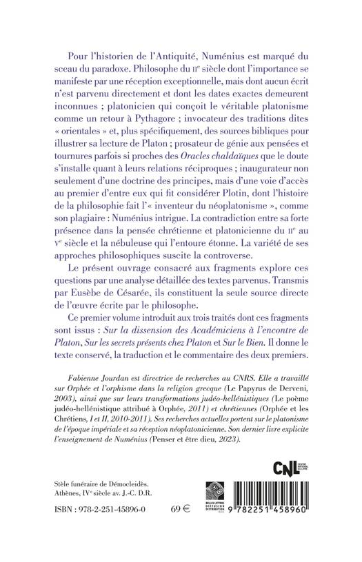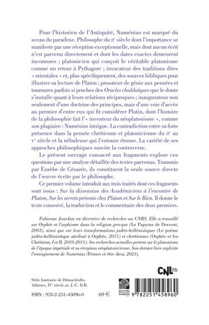 Pour l’historien de l’Antiquité, Numénius est marqué du sceau du paradoxe. Philosophe du IIe siècle dont l’importance se manifeste par une réception exceptionnelle, mais dont aucun écrit n’est parvenu directement et dont les dates exactes demeurent inconnues ; platonicien qui conçoit le véritable platonisme comme un retour à Pythagore ; invocateur des traditions dites « orientales » et, plus spécifiquement, des sources bibliques pour illustrer sa lecture de Platon ; prosateur de génie aux pensées et tournures parfois si proches des Oracles chaldaïques que le doute s’installe quant à leurs relations réciproques ; inaugurateur non seulement d’une doctrine des principes, mais d’une voie d’accès au premier d’entre eux qui fit considérer Plotin, dont l’histoire de la philosophie fait l’« inventeur du néoplatonisme », comme son plagiaire : Numénius intrigue. La contradiction entre sa forte présence dans la pensée chrétienne et platonicienne du IIe au Ve siècle et la nébuleuse qui l’entoure étonne. La variété de ses approches philosophiques suscite la controverse.