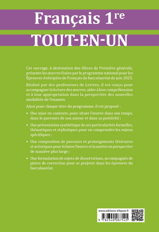 Cet ouvrage, à destination des élèves de 1ère générale, présente les œuvres fixées par le programme national pour les Epreuves Anticipées de Français de juin 2025.