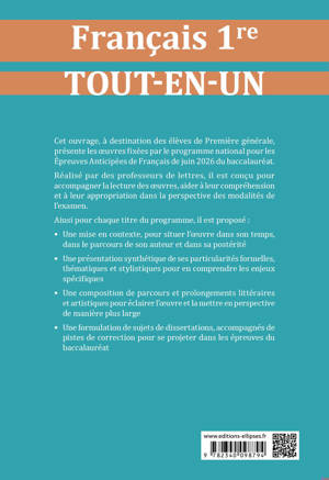 Cet ouvrage, à destination des élèves de 1ère générale, présente les œuvres fixées par le programme national pour les Epreuves Anticipées de Français de juin 2026 du baccalauréat.