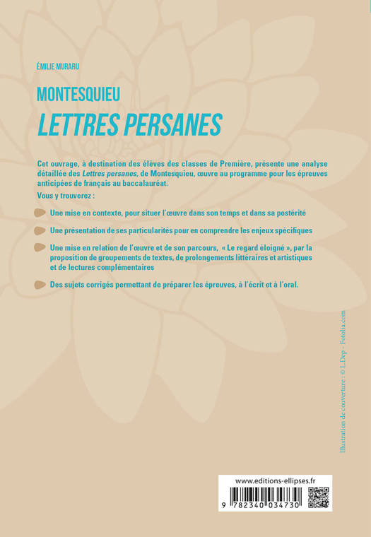 Cet ouvrage, à destination des élèves des classes de Première, présente une analyse détaillée des Lettres persanes de Montesquieu, œuvre au programme pour les épreuves anticipées de français au baccalauréat. Vous y trouverez :
