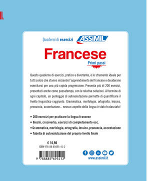 200 exercices de français pour italiens débutants Ce cahier d’exercices très pratique et ludique a été conçu spécialement pour les débutants en français. Plus de 200 exercices à la progression étudiée et sous forme de jeux sont proposés, accompagnés de leurs corrigés. À la fin de chaque chapitre, vous pourrez également autoévaluer votre niveau de langue. Aucune dimension de la langue n’a été oubliée : la grammaire, l’orthographe, la syntaxe, la prononciation et même l’accentuation des mots ! Plus de 200 exercices de français Jeux, QCM, exercices à trous, etc. Conjugaison, syntaxe, grammaire, prononciation... Testez votre niveau avec l’autoévaluation …