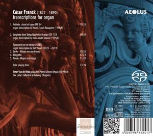 After Joseph Callaerts (titular organist from 1891 to 1901), Gustaaf Brees (from 1901 to 1926), Alex Paepen (from 1926 to 1962) and Stanislas Deriemaeker (from 1962 to 2002), Peter Van de Velde is the fifth titular organist of the romantic Schyven organ of Antwerp Cathedral. Peter Van de Velde, born in 1972, began his organ studies as an autodidact at the age of nine. At twelve he became organist of the village church of Doel in East Flanders. He received his first music lessons at the Antwerp Academy of Fine Arts. There he was awarded a first prize for aural training and the highest distinction in the organ category. Peter Van de Velde continued his studies at the Royal Flemish Music Conservatory in Antwerp, where he won several first prizes and a soloist diploma in 1996. He was the last student of Stanislas Deriemaeker. During his studies, and also afterwards, he participated in numerous master classes for organ and improvisation.