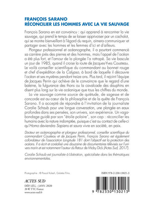 La vie sauvage comme source de quiétude, de sagesse et de concorde est au coeur de la philosophie et de la quête de François Sarano. Il a accepté de répondre à l'invitation de la journaliste Coralie Schaub pour une longue conversation, une plongée en eaux profondes dans ses pensées, son univers, son expérience. Un vagabondage guidé par son "étoile polaire", son cap : réconcilier les humains avec la nature indomptée, puisque c'est au contact de celle-ci qu'Homo deviendra Sapiens et saura vivre en société, en paix.