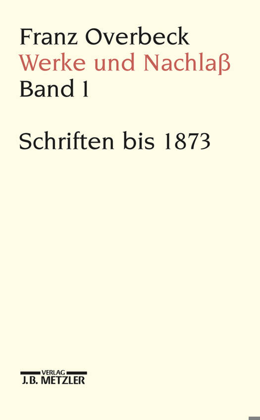 Franz Overbeck war einer der großen Denker des 19. Jahrhunderts. Sein Einfluss auf Nietzsche, Barth, Löwith, Benjamin, Taubes und viele andere ist unbestritten. "Werke und Nachlaß" erschließt erstmals Overbecks Gesamtwerk und stellt den Theologen und Historiker vor als einen skeptischen und zugleich sensiblen und distanzierten Beobachter der verschiedenen geistigen und politischen Strömungen des 19. Jahrhunderts. Nicht zuletzt für die gegenwärtige Diskussion über Geschichte, Mythos und (Post-) Moderne ist die Beschäftigung mit den Gedanken dieses "antimodernen Modernisten" wichtig. Band 1 enthält von Overbeck publizierte Schriften bis 1873. Overbecks wegweisende Streit- und Friedensschrift "Über die Christlichkeit unserer heutigen Theologie" wird in der Fassung der 1. Auflage wiedergegeben, ergänzt um die Veränderungen der 2. Auflage. Damit ist der wirkungsgeschichtlich bedeutsame Text zur "Christlichkeit" zugänglich.