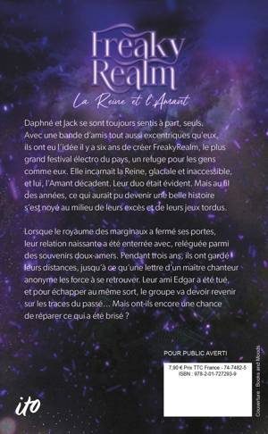 Daphné et Jack se sont toujours sentis à part, seuls. Avec une bande d’amis tout aussi excentriques qu’eux, ils ont eu l’idée il y a six ans de créer FreakyRealm, le plus grand festival électro du pays, un refuge pour les gens comme eux. Elle incarnait la Reine, glaciale et inaccessible, et lui, l’Amant décadent. Leur duo était évident. Mais au fil des années, ce qui aurait pu devenir une belle histoire s’est noyé au milieu de leurs excès et de leurs jeux tordus.