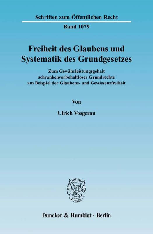 Kopftuch- und Kruzifixentscheidung des BVerfG haben deutlich werden lassen, daß bereits die dogmatischen Grundlagen des Umgangs mit der Glaubens- und Gewissensfreiheit des Grundgesetzes unklar geblieben sind. Diese dogmatischen Grundlagen sind nicht durch oberflächliche oder nur am letztlich beliebigen rechtspolitischen Vorverständnis orientierte Kritik am BVerfG zu gewinnen, sondern in der heutigen Zeit - zur Vorbereitung einer rationalen und demokratisch legitimierten Einwanderungs- und Integrationspolitik- neu und von der Dichotomie grundrechtlicher Freiheit und demokratischer Teilhabe her zu bestimmen. Diese Neubestimmung, die auch den offenen Paradigmenstreit im öffentlichen Recht zwischen Grundordnungs- und Rahmenordnungsthese sowie das institutionelle Grundrechtsdenken, die Prinzipienlehre und die These von der herausgehobenen Bedeutung der historisch-subjektiven Auslegung neu einordnet und fruchtbar macht, führt zu einer gewandelten Perspektive: schrankenvorbehaltlose Grundrechte haben keinen Schutzbereich, sondern einen Gewährleistungsgehalt, d. h. sie sind in die Rechtsordnung eingeordnet. Der Glaube ist wortwörtlich frei, Religionsfreiheit bietet aber keine Handlungsprivilegien im forum externum. Mithin ist auch Art. 136 I WRV keine"Schrankenbestimmung", sondern eine Klarstellung des nichtprivilegierenden Gewährleistungsgehalts der religiösen Freiheitsrechte des Grundgesetzes.